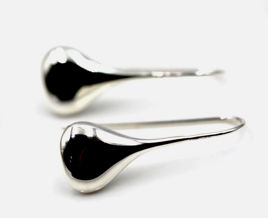 Genuine 925 Sterling Silver Wide Teardrop Tear Drop Hook Earrings