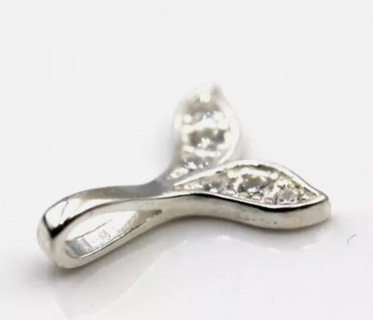 Genuine Sterling Silver 925 Small Whale Tail Solid CZ Pendant Charm