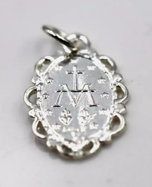 Sterling Silver 925 Medal 14x18mm Miraculous Mary Pendant Charm