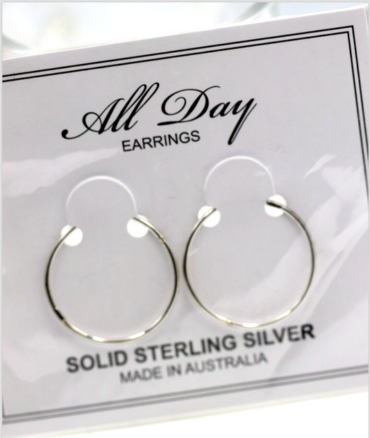 Sterling Silver or Sterling Silver Hard Gold Plated Sleepers Hinged Earrings Plain 25mm
