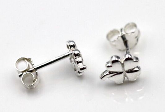 Sterling Silver 925 Children Child Small Four Leaf Clover Earrings