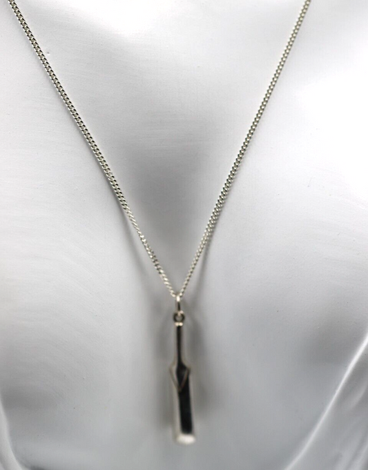 Sterling Silver Solid Medium/Large Size Cricket Bat Pendant / Charm + Chain