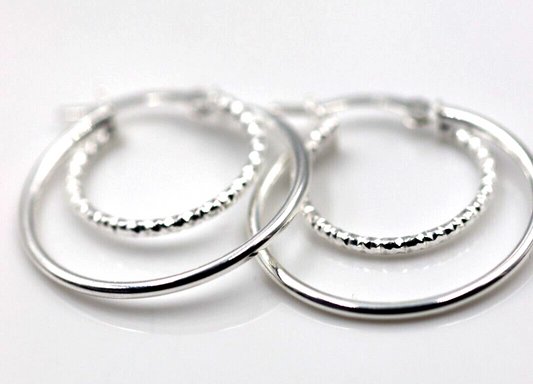 Sterling Silver 925 Double Polished Tube Hoop Earrings 25mm